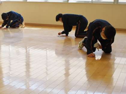 春休みに入った教室はどこもピカピカです。そしてこの休み中に業者の方がワックスがけをしてくれます。このピカピカ教室の陰には11期生の献身的な努力がありました。