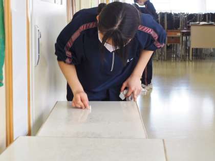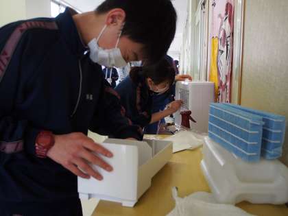 お世話になった加湿器を、ていねいに掃除しています。細かいファンのところは、なんと綿棒を使ってていねいにゴミをとりのぞいています。配膳台の汚れもきれいに落としています。