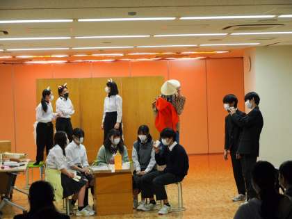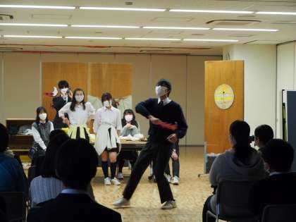演劇部は今年度、成城ホールで行われる発表会が中止となり、舞台発表の場がなくなりました。今日、3年生を送る意味を込めた「発表会」を保護者と先生が観客となり開催されました。