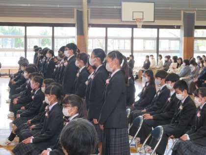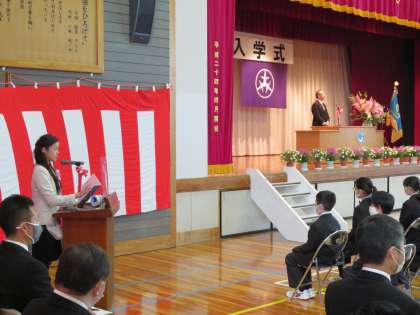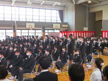 6組の呼名の様子です。校長先生より220名の入学が認められ、12期生がスタートしました。(田村)