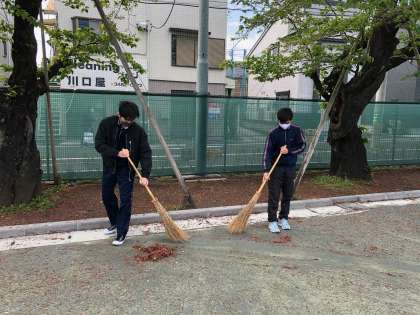 今朝は3年1組と2組の桜の花びら清掃ボランティアでした。