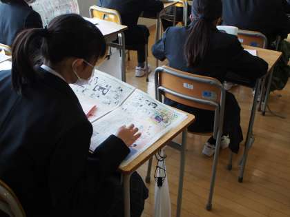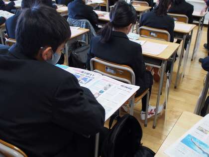 朝読書も授業への集中に役立つとう言われていますが、普段自分が興味がないことでも見出しや写真で思わず読んでしまう新聞は、今後、国際社会で生きていく中学生にとって視野を広げる大切なツールです。