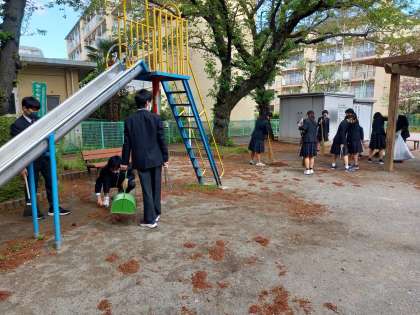生徒会「桜の花びら清掃ボランティア」の2日目。