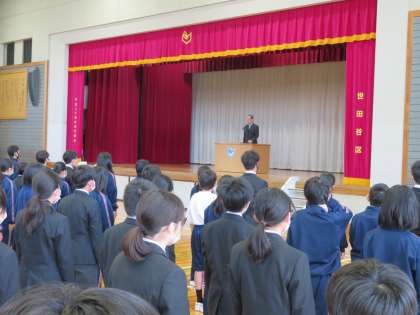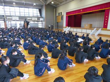 みなさんも、3年生になって「この学校の生徒であることに誇りをもっていますか」という質問に、自信をもってすっ、と手が挙がる。そういうフナキボ生になれるよう学校生活を送ってほしいと思います。