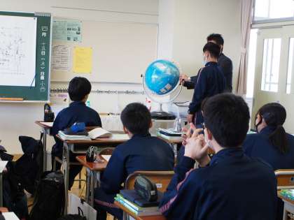 11期生の地理は、日付変更線について学んでいます。日本にいると、ほとんど必要性を感じないものですが、これから世界に羽ばたくフナキボ生にはぜひ理解してもらいたい内容です。