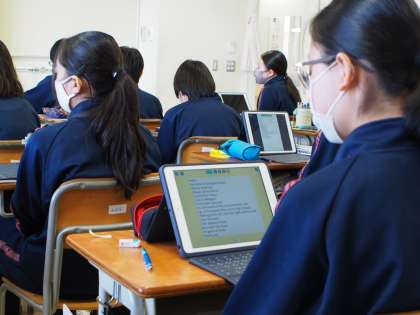 例えば、11期生のクラスでは、今日の6時間の授業のうち半分がタブレット持参の授業です。2021年度が始まったばかりですが、フナキボではギガスクールがすでに当たり前になっています。