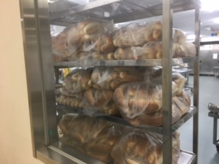 今日の給食は揚げパンです。味はちょっと渋めの白ゴマ味!朝早くから沢山のパンが給食室に積んであります!これから800個近いパンを揚げていきます!生徒は揚げパン大好きです。他のメニューもとっても美味しそう!今から給食の時間が楽しみ!(大橋)