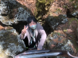 河口湖フィールドセンターに到着しました。感染防止のガイドラインを中心に話を聞いたあと森にフィールドワークに出ました。先生方も溶岩樹形入ってみました!