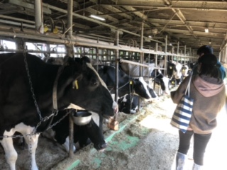 実地踏査の最後は静岡県に移動して富士ミルクランドを見学しました。たくさんの牛に囲まれて先生方も興奮気味です!