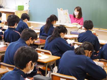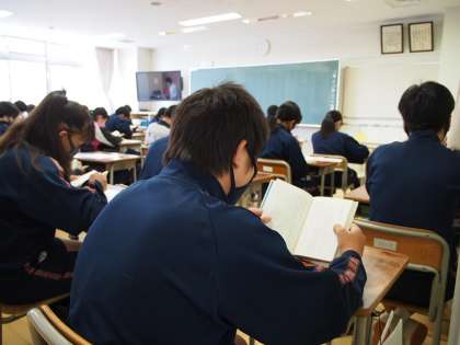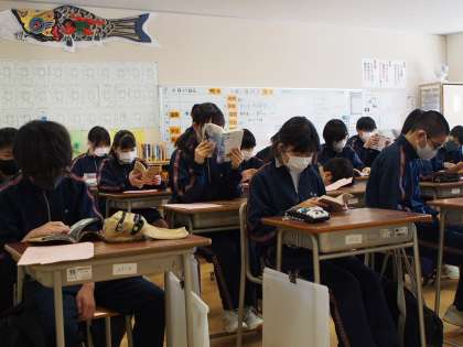 急におとなびた10期生。朝読書の集中している姿からもおとなの雰囲気が漂ってきます。担任の先生も、今週から毎朝配布されている新聞に目を通しています。