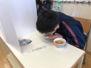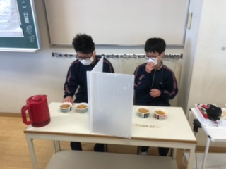 二年生の地理では日本の地域区分の授業を行いました。西日本と東日本では味付けが違うことを西のどん兵衛と東のどん兵衛を食べ比べて感じました!