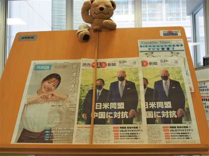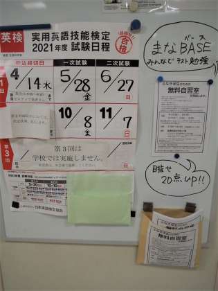 10期生と12期生の昇降口には様々なお知らせの掲示物があります。フナキボの代名詞「NIEコーナー」を始め、英検や漢検の案内、そして地域の方が運営する無料自習室のお知らせなどが並んでいます。フナキボ生のための情報の宝庫となっています。