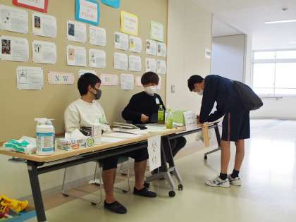 今日から5月の連休中にかけて「ふなきぼ生のための無料自習室」の開設が始まりました。受付で検温をしたあと、静かに勉強したい部屋と相談や質問をしながら勉強したい部屋に分かれます。
