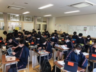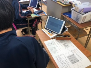 3-7の公民で発問に対して「ロイロノートのテキストに書き込んで提出してごらん」と伝えるとどんどん回答が集まりました。挙手をするのは勇気がいるけどロイロなら気軽にできるようです。タブレットのおかげで恥ずかしがり屋も主体的に授業に参加できています。