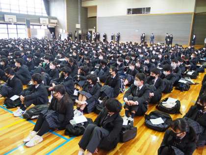 始業式が始まると、やっぱりいつものフナキボ生。今年もビシッと決めるところは決めるけじめのすばらしさは健在です。