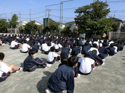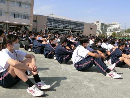 地震が発生したという設定で、教室ですぐ机の下に潜り、