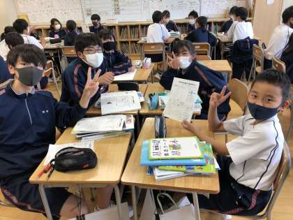 1年生の地理では、世界の姿の単元のまとめとしてで iPadを利用して作成した国クイズをお互いに出し合っています。