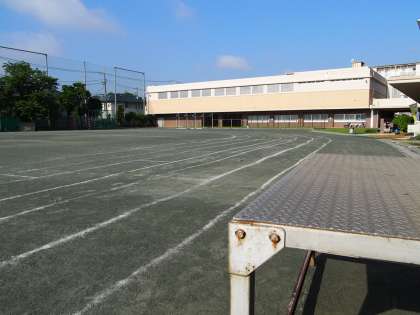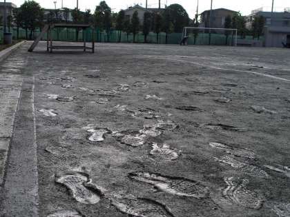 雨が上がりさわやかに晴れわたる校庭です。が、よーく見ると昨夜のしとしと雨の痕跡が。残念ながら今朝の代表リレーの朝連は中止となりました。