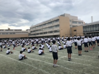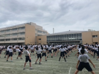 6校時の全校練習は3年生のお手本を見てから全校でラジオ体操を合わせました。さすが3年生、ビシッとしています!