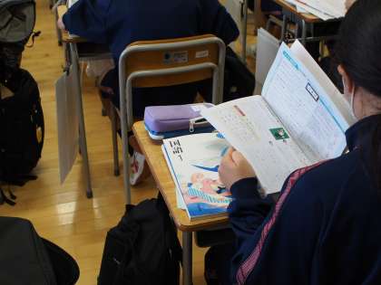 12期生の国語は情報の整理の仕方を学んでいます。先生が読んだ文章を聞き取って要点をメモする練習をしています。集中力のすばらしさは上級生並です。