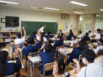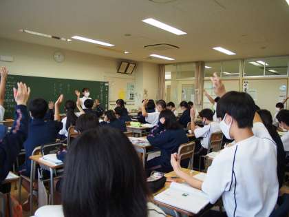 一方この盛り上がりは、教材にペットのことが出てきたので少し話題にしているところです。犬か猫かハムスターか、はたまた…。先生が半年前まで飼っていた犬の話も。
