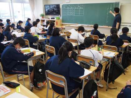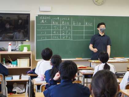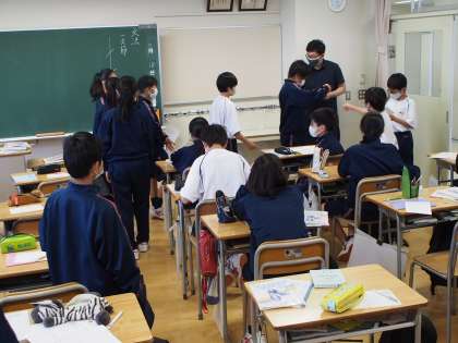 国語の文法の授業では、文節を学んでいます。全開やった小テストを返却中。このクラスの平均点は3クラス中の真ん中だったようです。