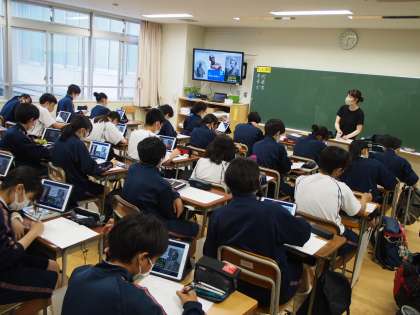 10期生の歴史はタブレットを使用して美術や音楽、文学を学びます。