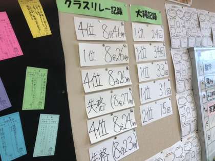日々のクラスの記録を体育委員の女子生徒が掲示してくれます。これまでの積み重ねが分かりやる気になります!明日も予行頑張ろう!