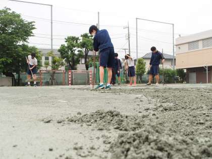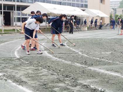 昨晩の雨でぬかるんでいたところもだいぶ乾いてきました。整備でけが人がでないように頑張っているフナキボ生です。
