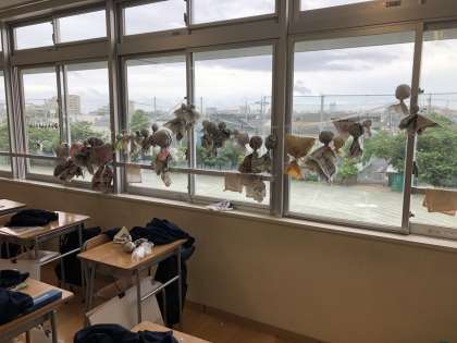 3年生の体育委員の子が朝からてるてる坊主を作っている姿をみて、明日が晴れますように!と願いを込めて1-1もみんなでてるてる坊主を作りました!