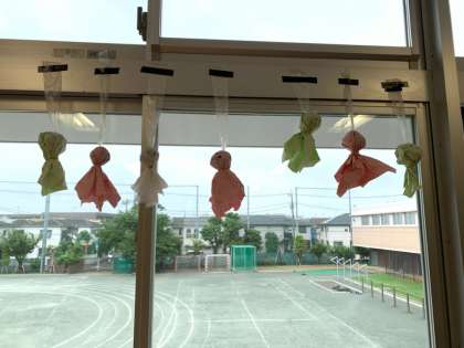 明日晴れるようにと願いを込めて、沢山のてるてる坊主をつくりました。
