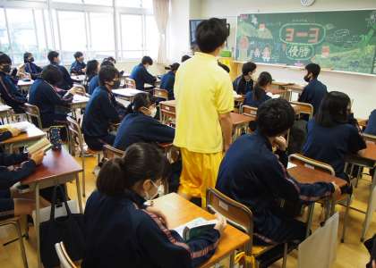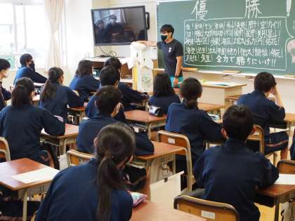 運動会が延期となった今朝のフナキボでは学級活動の時間に今後の時間割りなどの連絡をしています。が、生徒も教員もいまひとつ気持ちがもりあがりません。それは、そうですね。「先生、この天気ならできると思います!」と必死に訴える生徒も。。。わかります、その気持ち!