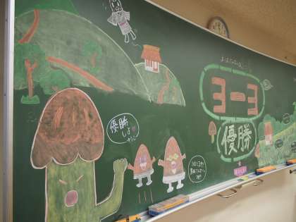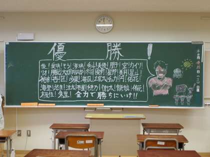 今朝教室に描かれていた運動会へ向けての黒板artをご紹介しましょう。