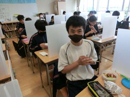 運動会延期は残念でしたが、昼食のお弁当は変わらず楽しみだったようです。朝から、「何が入っているかな?」と友だちと話していました。4時間目が終わり、と〜〜っても嬉しそうにお弁当を広げていました。
