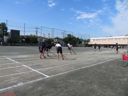 本日、運動会を無事行えました。朝準備では、それぞれの係が一生懸命準備を行っていました。(田村)