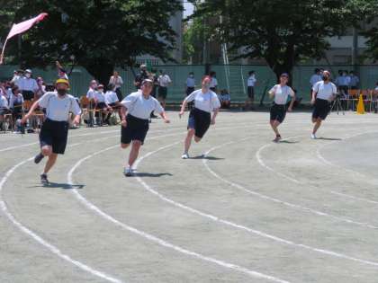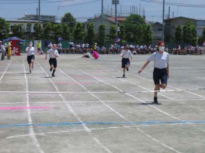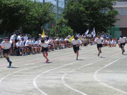 3年生100M走の様子です。競技の迫力のみならず、一人一人の気持ちが走りにこもっていました。(田村)