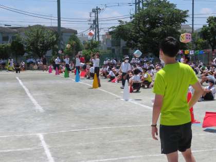走る速さ、運の要素などが絡み、生徒たちも楽しんで競技に取り組んでいました。(田村)
