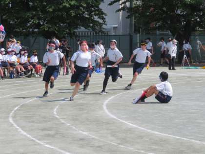 2年生のクラスリレーの様子です。2年生の最後のクラス対抗の競技になります。どの生徒も全力を出し尽くしました。(田村)