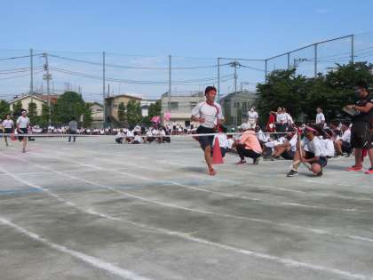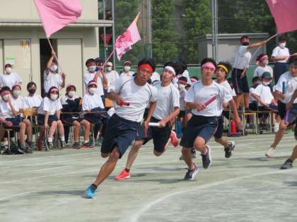運動会、最後の競技は各クラスの代表リレーになります。クラスの代表としての誇りをもってどの生徒も一生懸命走りました。