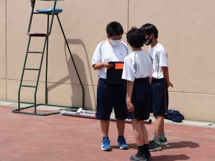 一回跳んだあと、撮影した映像を見て足の上がり方、上半身の角度などいくつかのチェック項目を確認していきます。しかも真剣モードで。