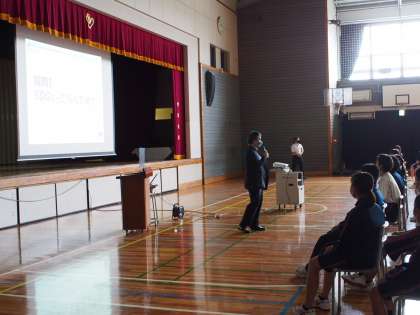 今日の1校時は12期生が体育館に集まりました。読売新聞NIE企画デザイナーの田中孝宏さんをお招きして、SDGsについて学びました。