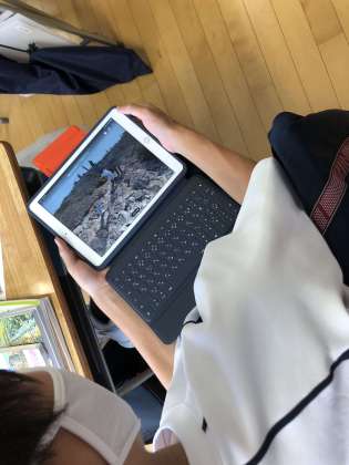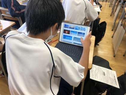 アンデス山脈の生活や環境についてiPadを利用して生徒それぞれいろいろなことを調べています。