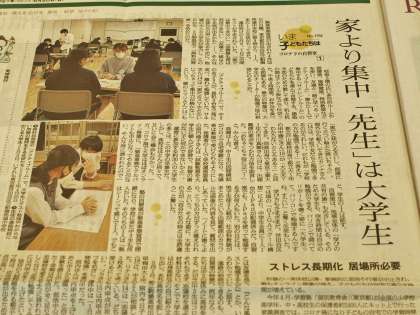なんと、フナキボの自習室の取組みが今朝の新聞(全国版)に掲載されました。今日から4日間の特集記事で紹介されるそうです。