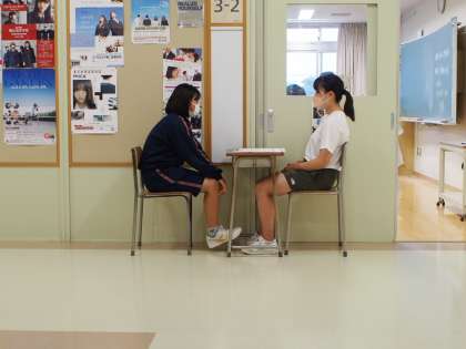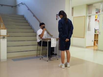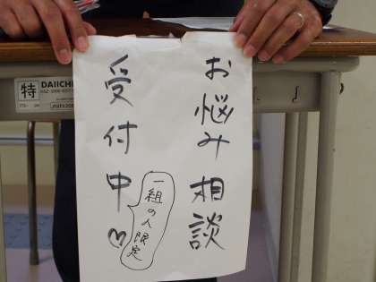修学旅行の準備を進めながら、面談を進めているクラスも。もちろん、教室には副担任が入って声かけをしています。机を見ると「お悩み受付中」の文字が。中学生特有の様々なお悩みを聞いてもらえるといいですね。