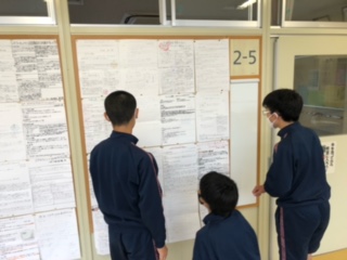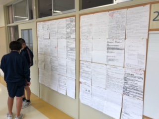 来週の保護者に向けて、社会科係が一年生の3学期に行った世界の国調べレポートを掲示しました!
