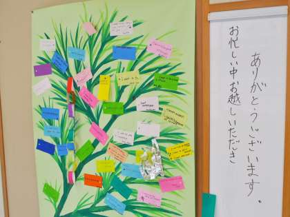 廊下に貼ってある短冊にはたくさんの願いごとが英文で記されています。そして今日の給食も七夕メニューでした。あれ、この願ごとを書いたのは…担任?生徒?まっ、あえて問わないことにしましょう。