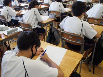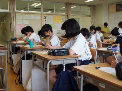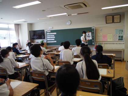 文字式について学んでいます。どんな整数を思い浮かべておもいうかべても、最後は4になるのはなぜ?みな真剣にワークシートに式を書いています。