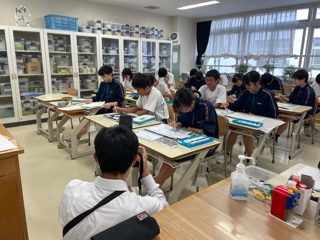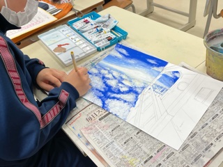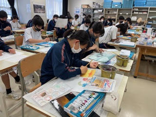 今日は美術の授業にカメラマンさんが来てくれました。絵の具で塗る真剣な眼差し。