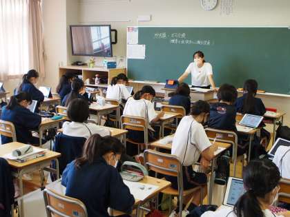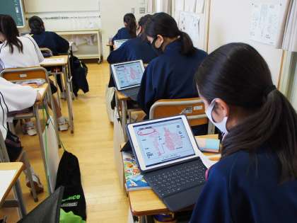 タブレットを使ってもプリントも使います。双方の特色をうまくミックスして授業を進めます。それにしてもタブレットは見慣れた風景になりました。