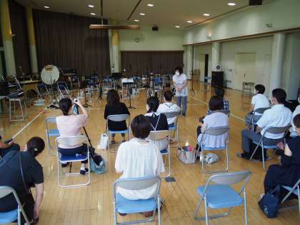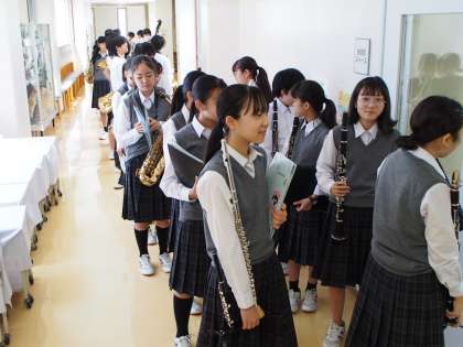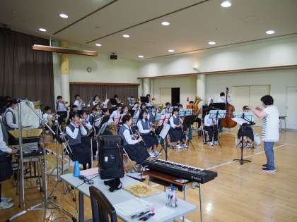 6日に行われる都の吹奏楽コンクールのリハーサルが行われ、無観客の本番に聴きにいけない保護者の方をご招待しました。